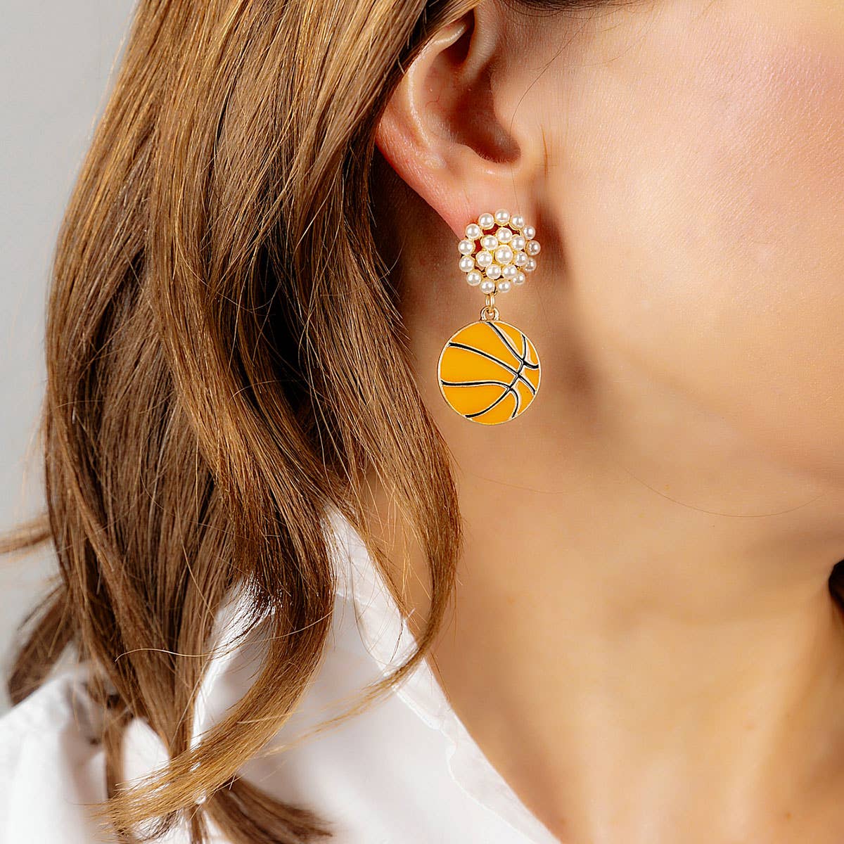 Basketball Pearl Cluster Enamel Drop Earrings in Orange