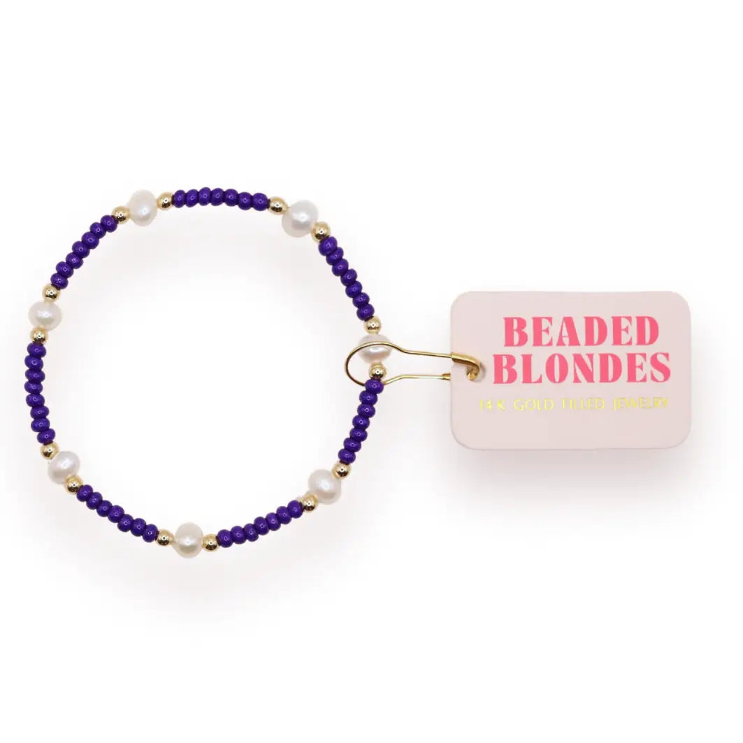 This bracelet is made with colorful czech glass beads, 2.5mm beads & pearls. • 14 K gold filled & elastic string • Handstrung in College Station, Texas. Sourced in the US. • Waterproof, workout proof & tarnish proof • Care tips - harsh chemicals can cause slight darkening