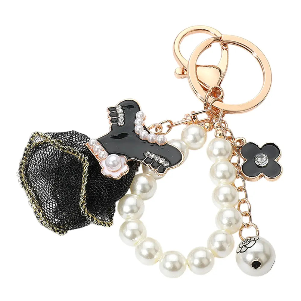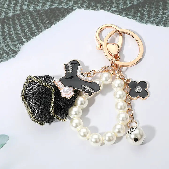 Enamel Pearl Mesh Dress Keychain / Bag Charm