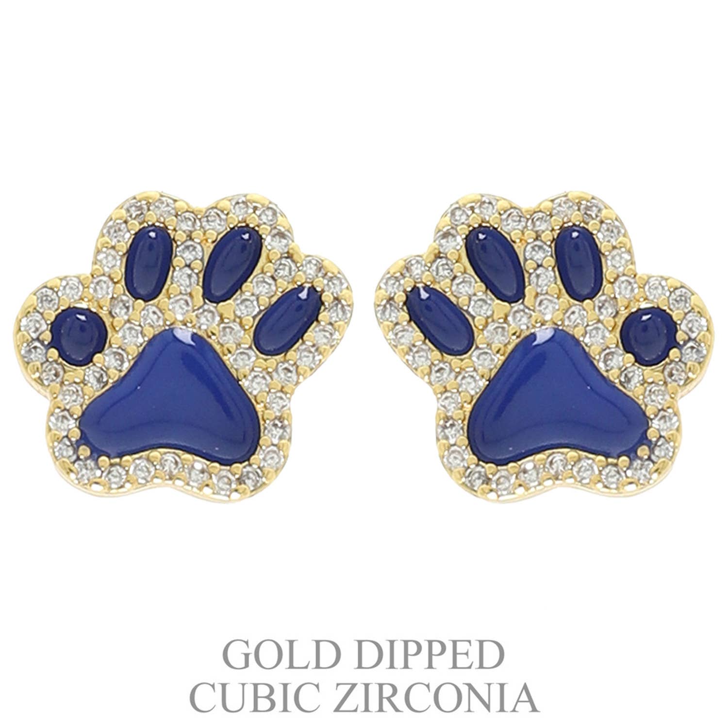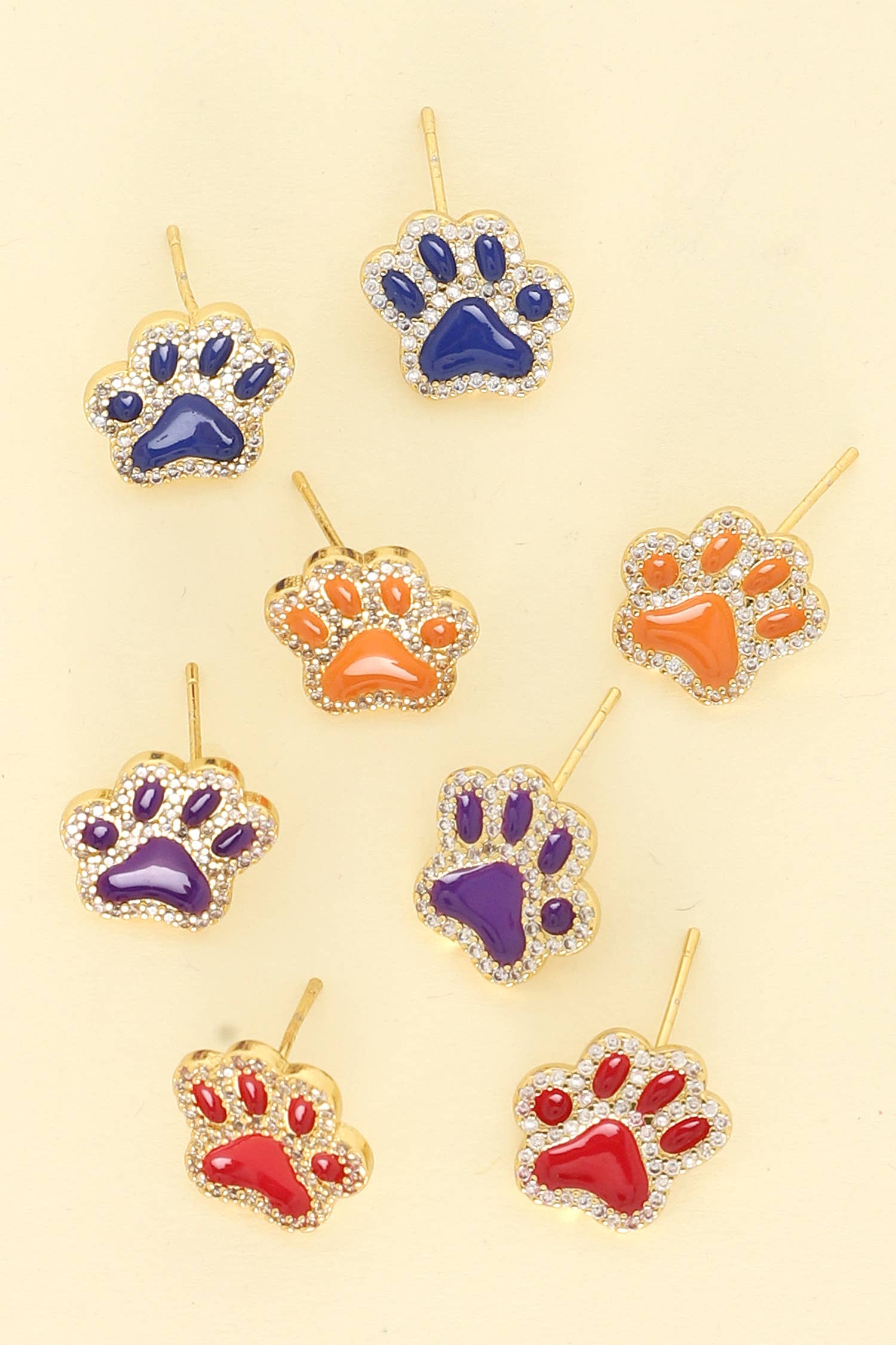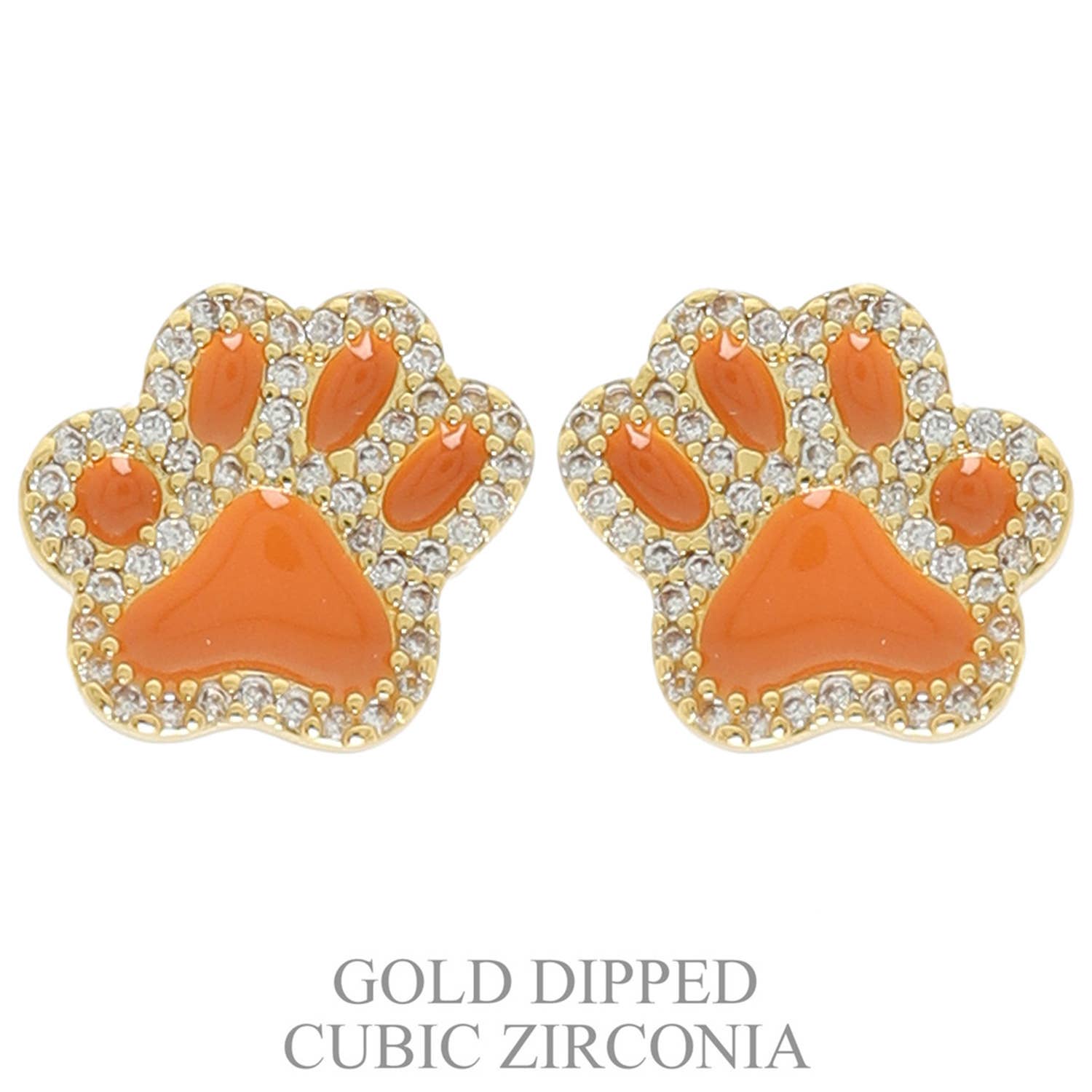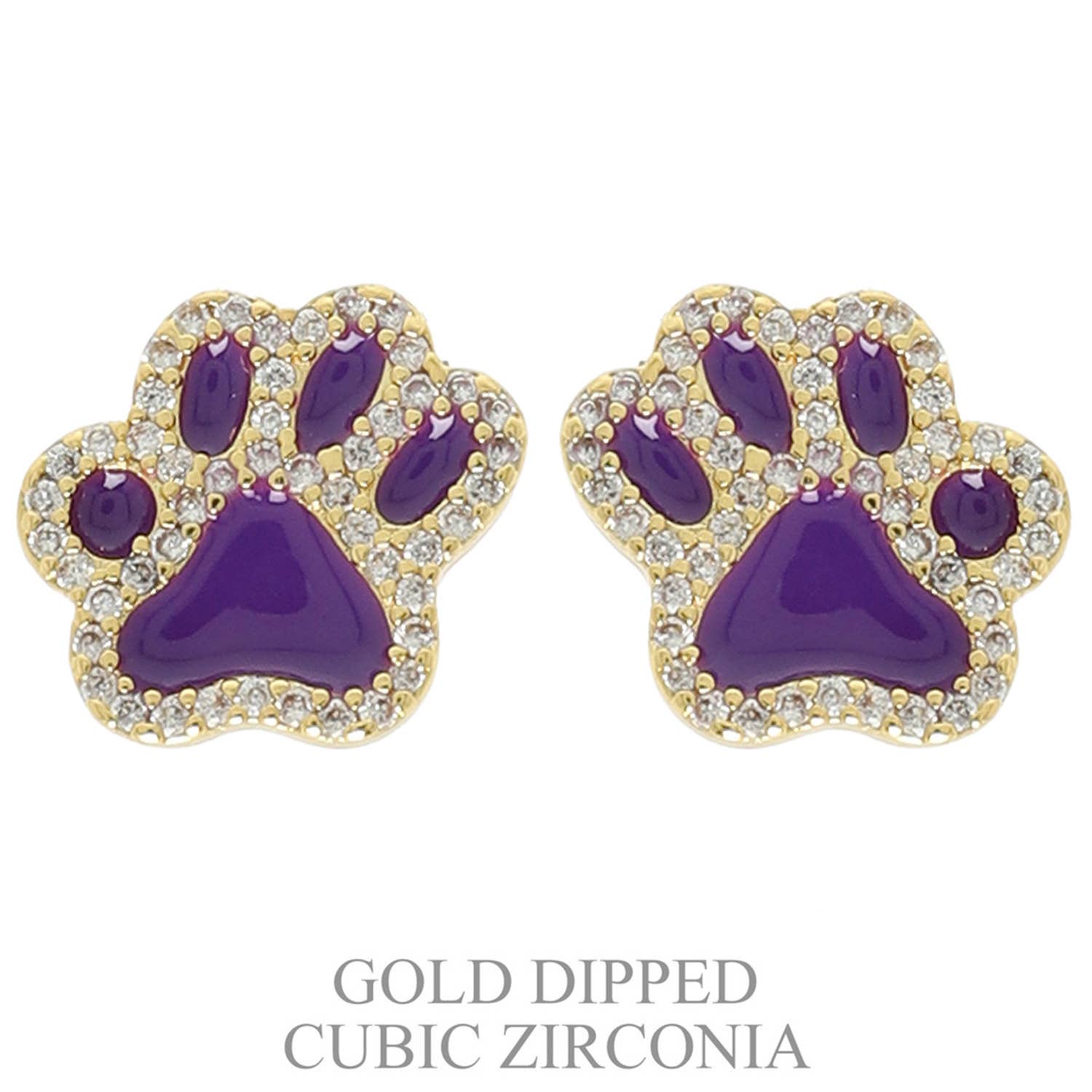 Elevate your game day outfit with our stunning Game Day Gold Plated CZ Paw Stud Earrings. Made with high-quality gold plating and sparkling cubic zirconia, these earrings add a touch of sophistication to your look. Show off your pride for your team while looking sleek and polished.