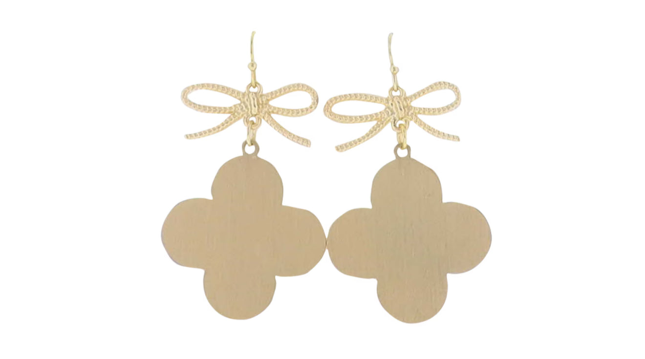 Gold bow with gold quatrefoil earrings