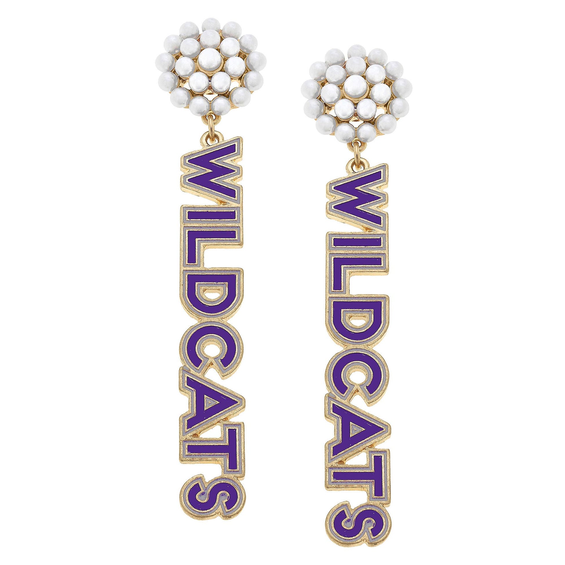 Accessorize your game day look with these Wildcats drop earrings. The "WILDCATS" earrings are perfect for making a statement while showing off your team spirit with pearl embellishments and block letters! DETAILS: * Base Metal with Worn Gold Plating * Enamel Material * Post-Back Closure * 2" Length *