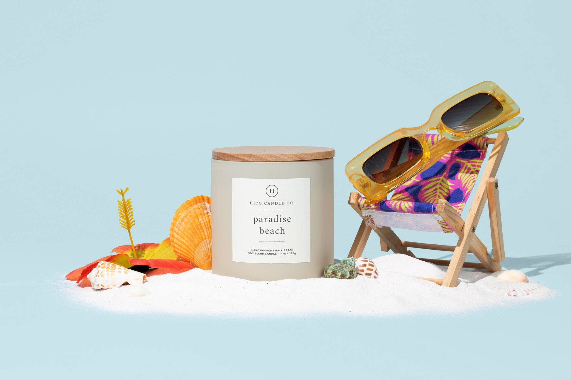 Our 14oz. candles are hand poured using a blended soy wax and double cotton wick.