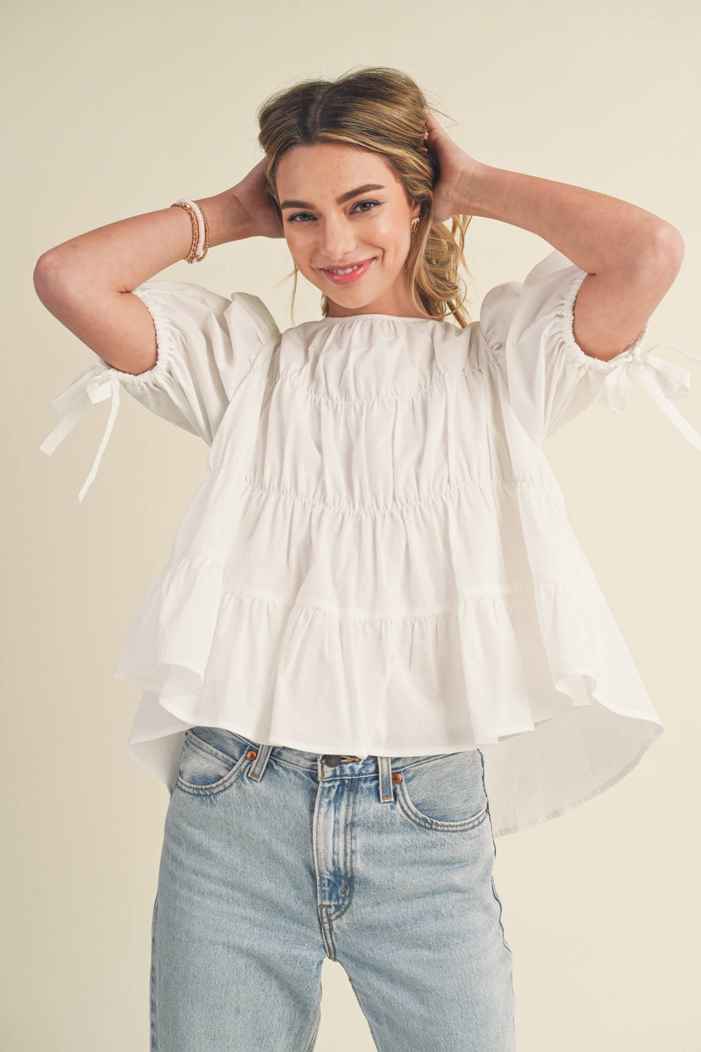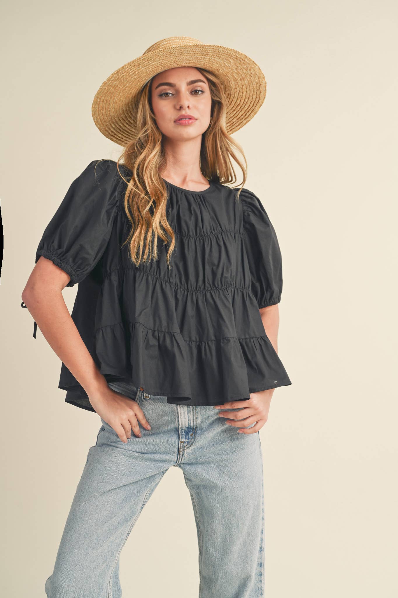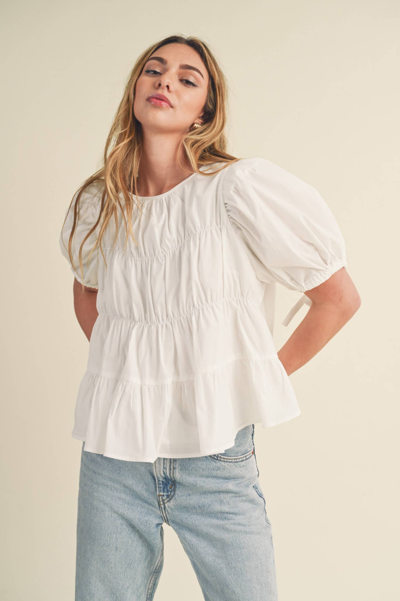 SWEET LEMONADE TIERED SHIRRING PUFF SLEEVE