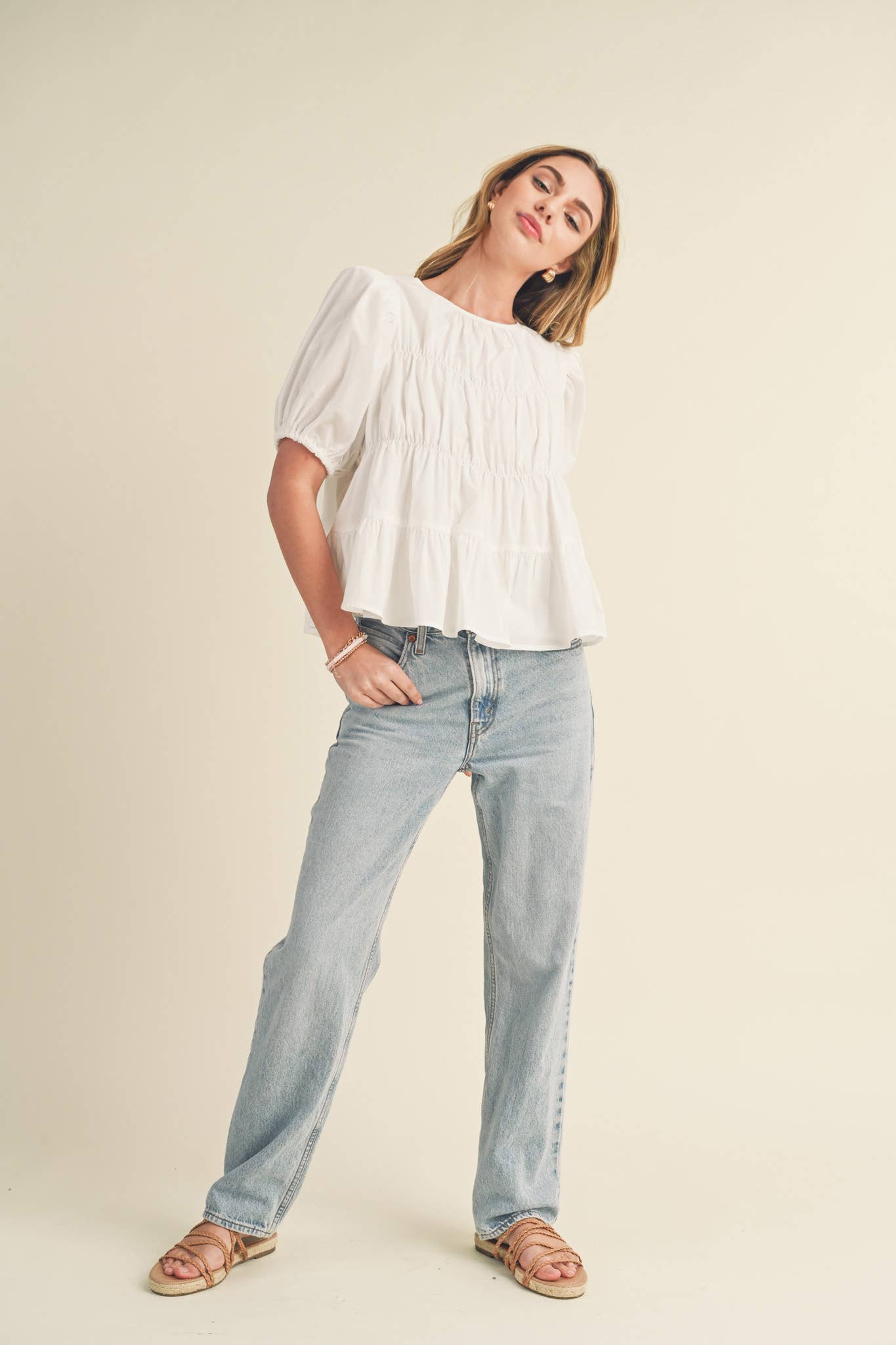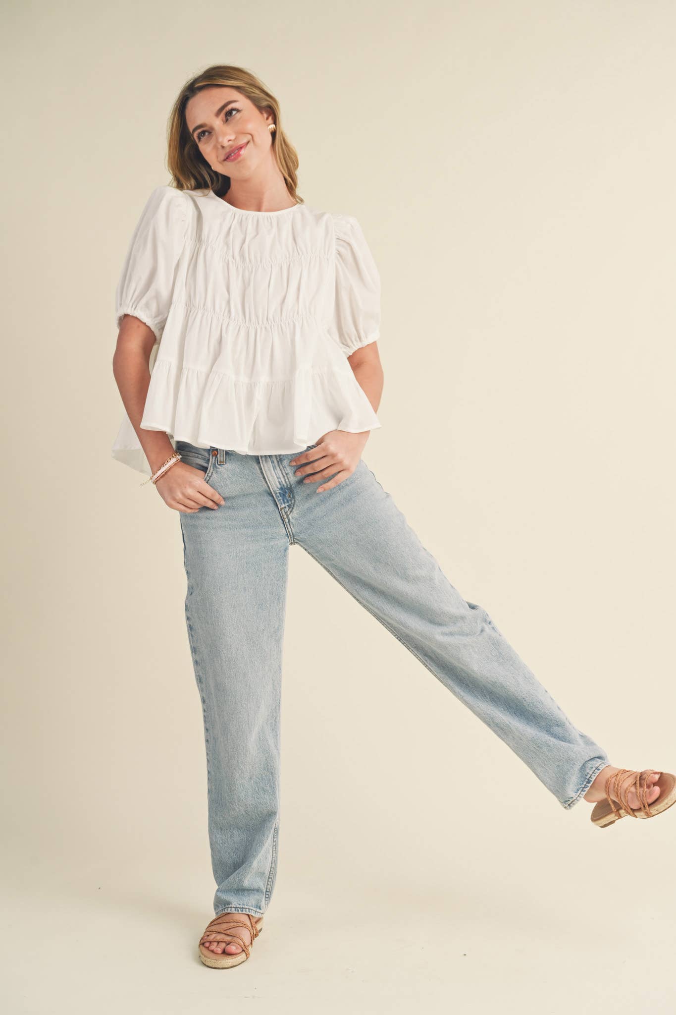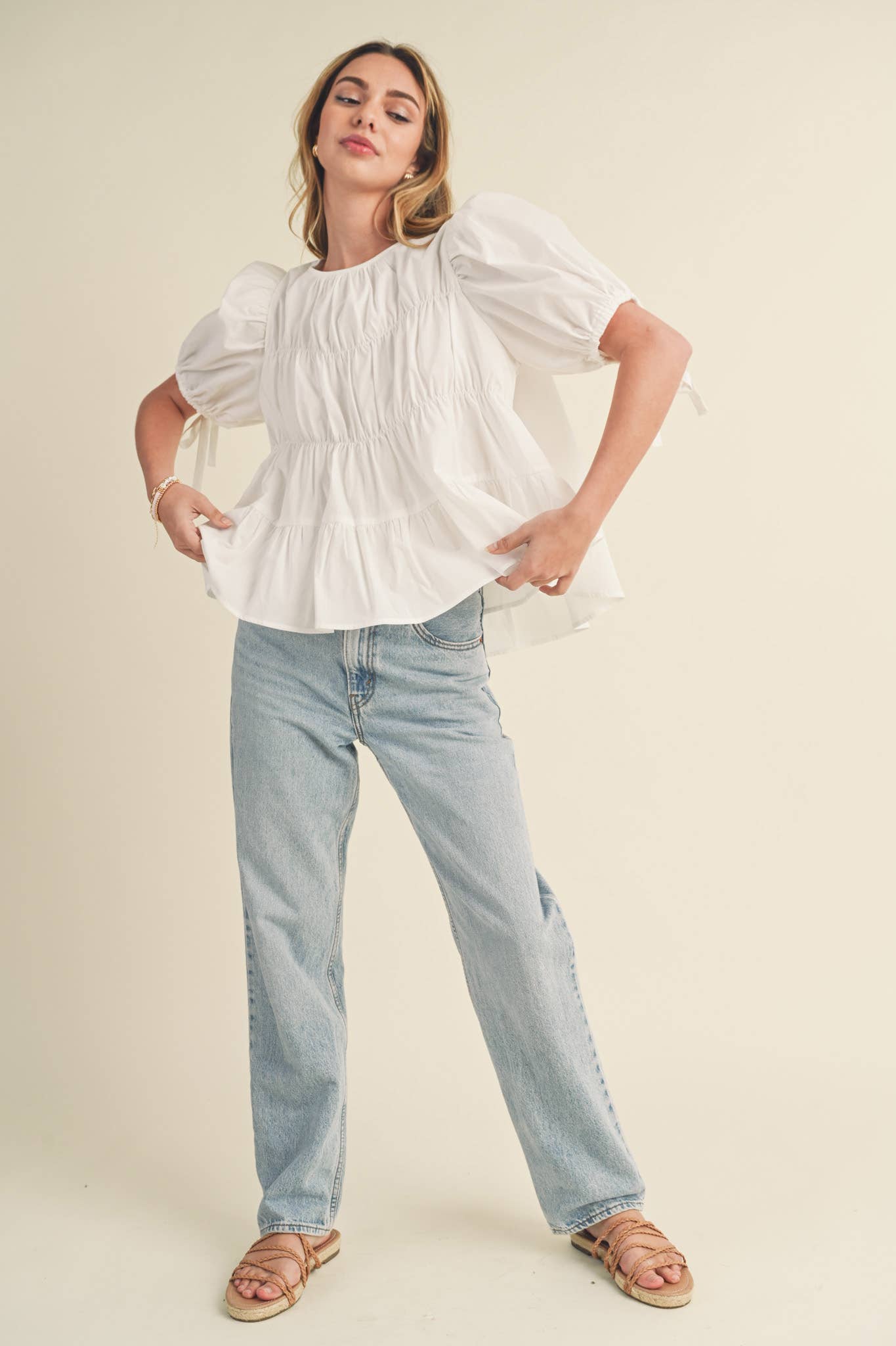 SWEET LEMONADE TIERED SHIRRING PUFF SLEEVE