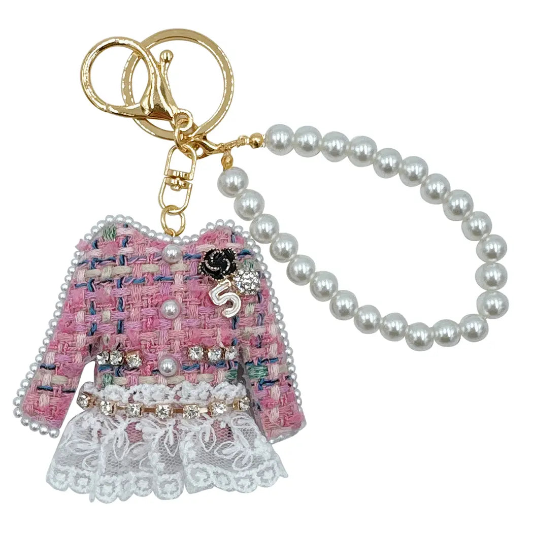 Tweed Lace Dress Pearl Key Chain Bag Charm