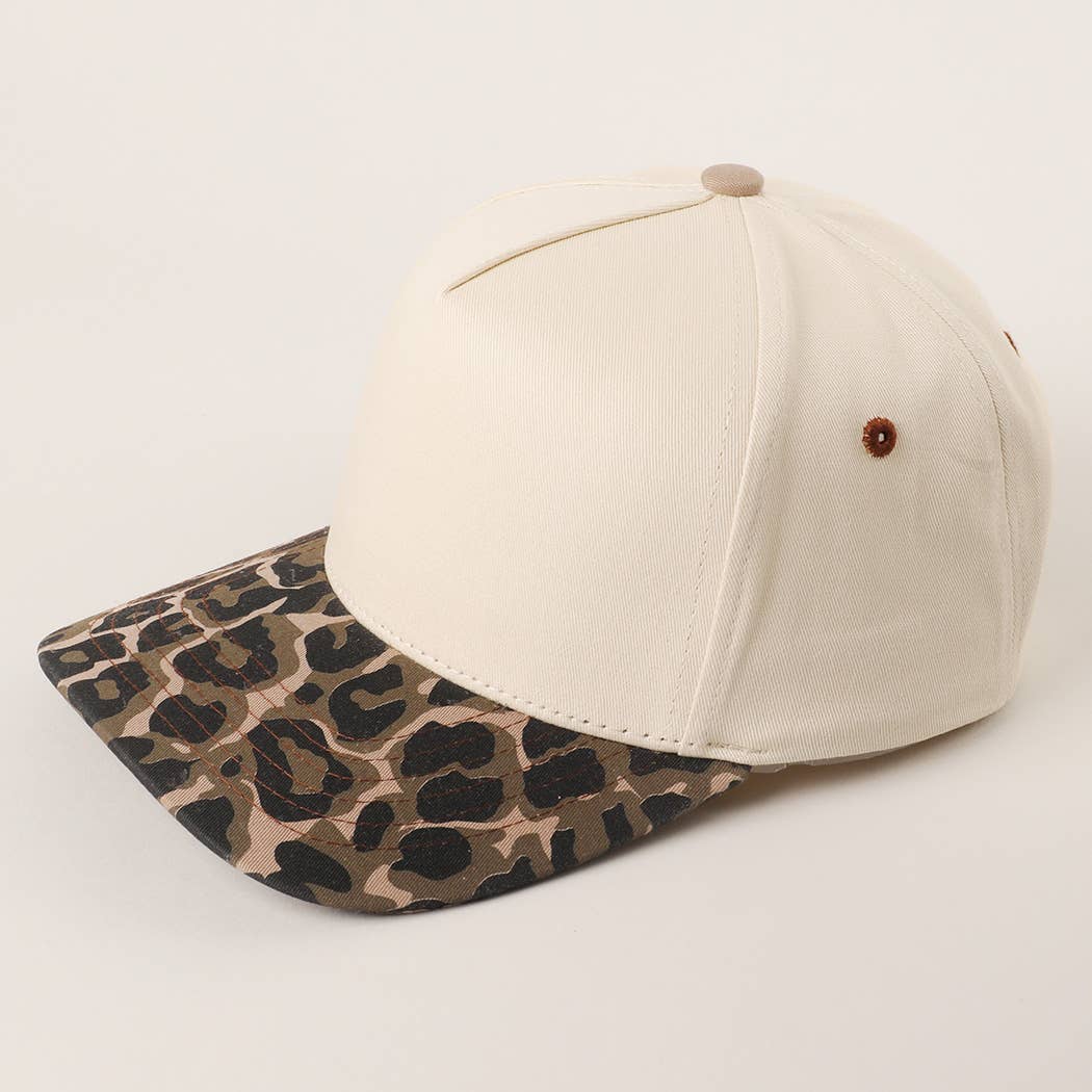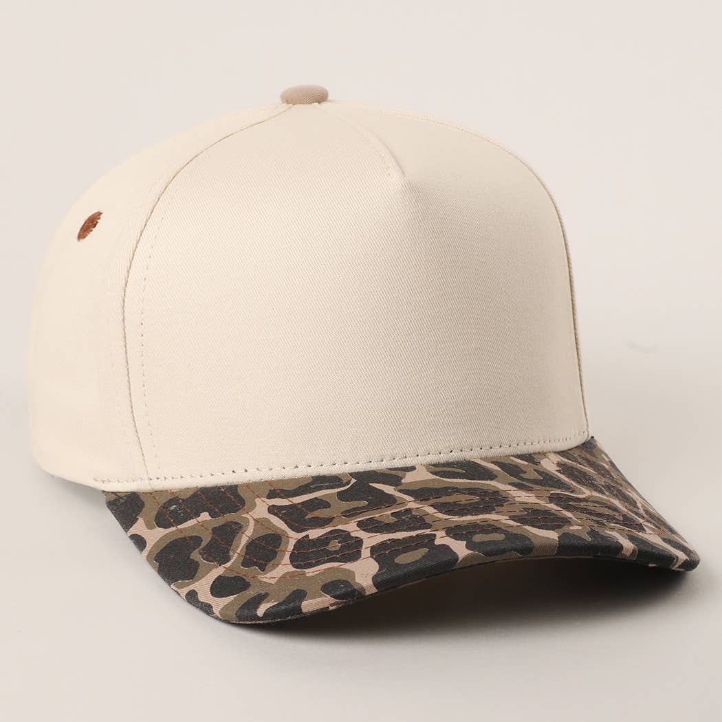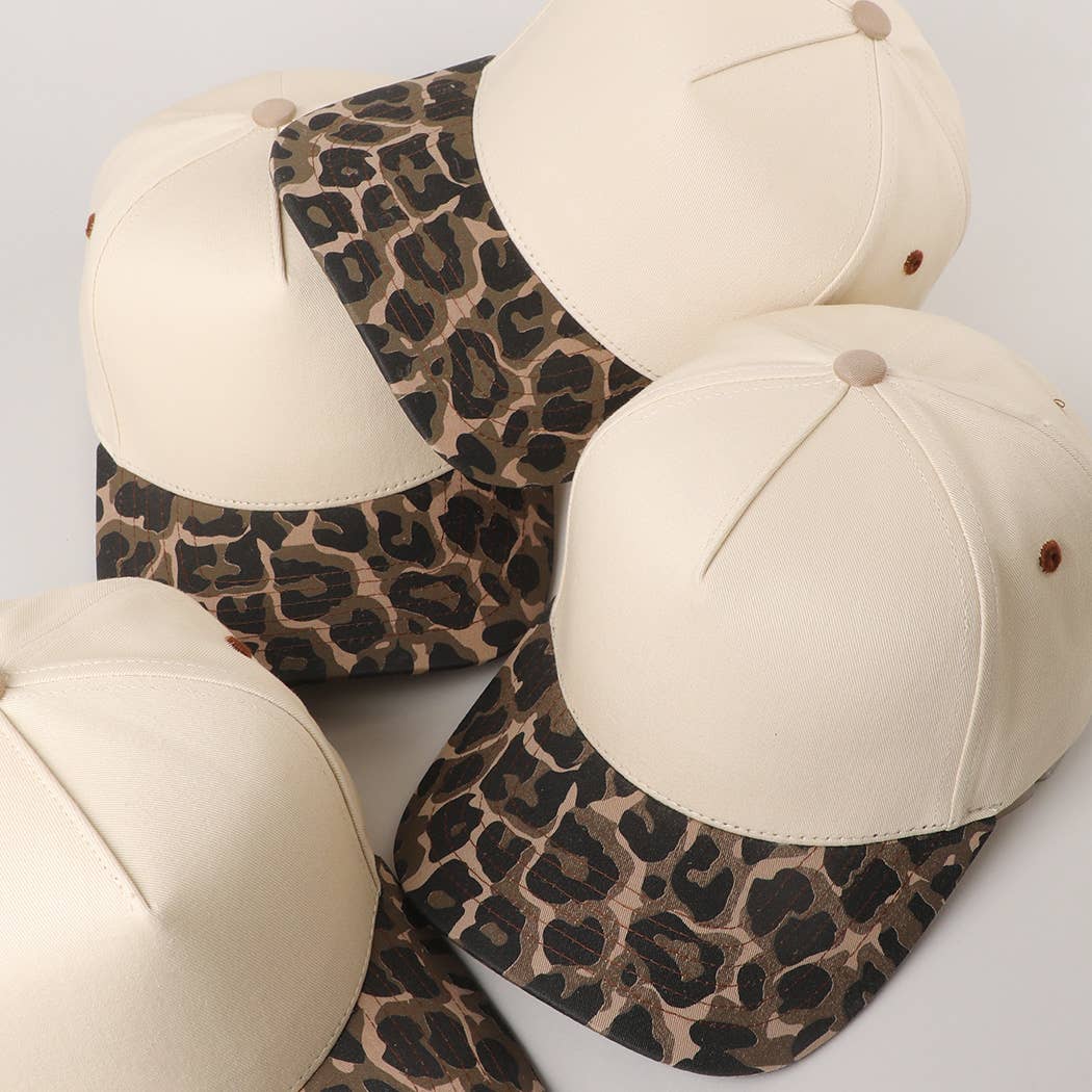 Two Tone Leopard Color Canvas Camo Trucker Hat - with Wildcats embroider in purple threads and stars in gold threads- 5 Panel Design Trucker Hat - 100% Cotton - Adjustable Snapback Hat - Relaxed Fit and Pre-Curved Visor *One Size Fits All - Adjustable Strap Makes Fit Comfortable.* Upgrade your everyday style with this clean and contemporary two-tone snapback cap. Featuring a soft beige crown and a bold leopard-print brim, this cap blends simplicity with a fierce edge. The structured front panel provides a crisp shape, while the soft fabric and breathable construction ensure comfort throughout the day. With its neutral tones and wild accent, this cap pairs effortlessly with a variety of outfits—from streetwear to casual looks. The adjustable snapback closure guarantees a secure and customizable fit, making it a reliable go-to accessory for daily wear or seasonal style updates.